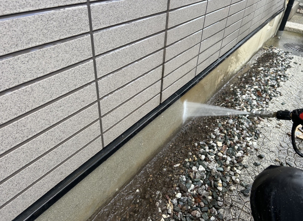 外壁塗装工事の際、意外と見落とされがちなのが「基礎部分の水洗い」です。